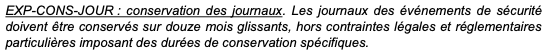 On constate que l’exigence de sécurité fixe une durée de conservation des journaux à douze mois :