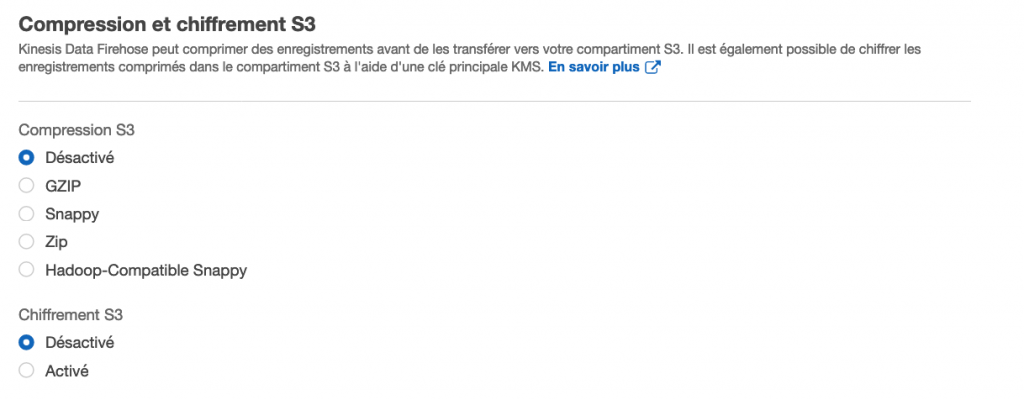 Notons que Amazon Kinesis Data Firehose nous propose optionnellement de :
