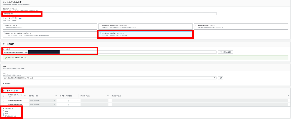 UDP の AWS PrivateLink エンドポイントを作成する (クライアント側)