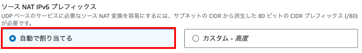 図8 に示すように、ソース NAT IPv6 プレフィックスの割り当て方法を選択してください。