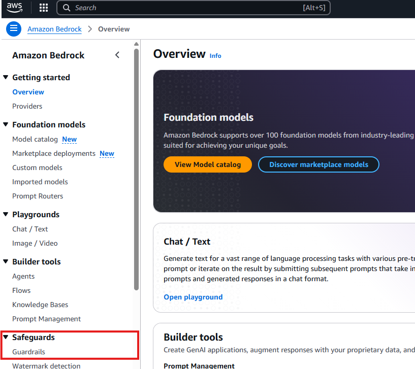 Amazon Bedrock のメニューの中から Guardrails を選択します。