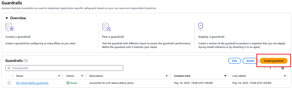 実際に Standard Tier を利用した Guardrails の利用方法を解説します。作成方法と動作確認の 2 つに分けて紹介します。