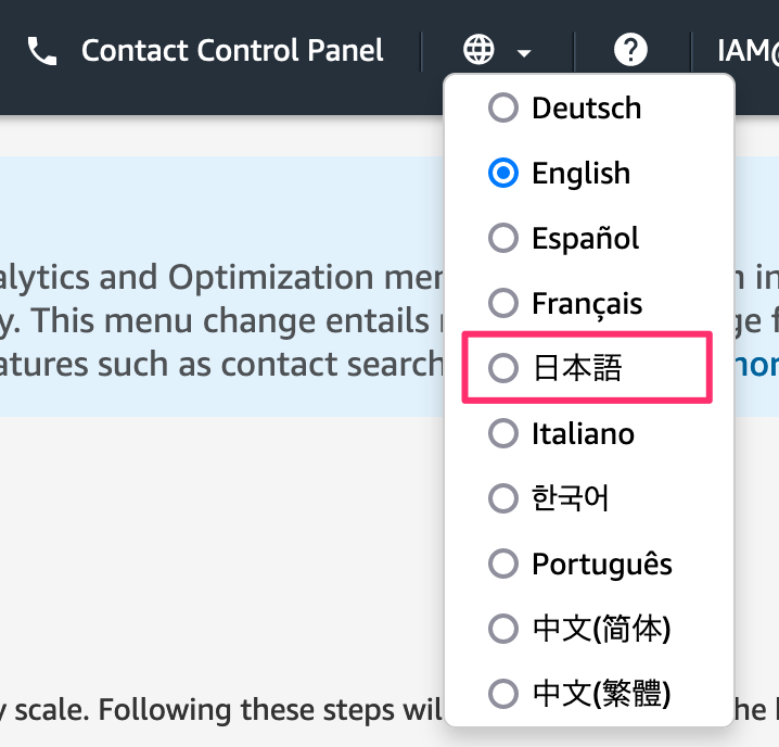 7. 上部の地球儀アイコンから、言語設定を変更します。