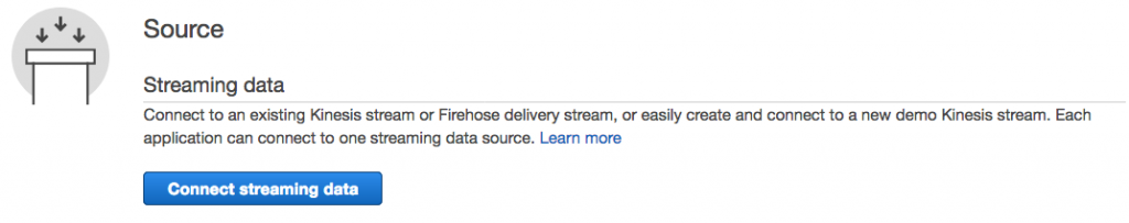 3. SQL の実行元となる Streaming Data を作成します。”Source” より [Connect streaming data] を選択します。