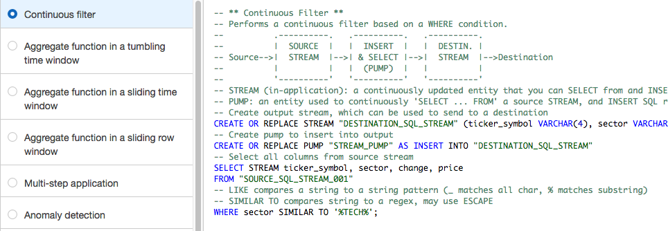 Kinesis Data Analytics は AWS Manegement Console から簡単に始めることができます。