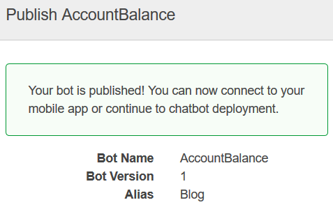 - ボットを公開し、エイリアスを作成する ― ボットを公開し、対話を可能にします。