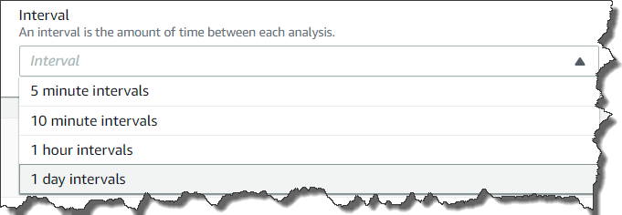 Lookout for Metrics の利用はまず検出器 (detector) を作成するフェーズから始めます。データソースと連携させることで、検出器はデータセットを認識し、そして監視を開始します。機械学習(ML)を使用して、ビジネスデータのパターンを見つけ、データの予想される変動と正当な異常を区別するようになります。この際以下の選択肢の中から学習させるデータに対する適切な時間間隔を設定します。