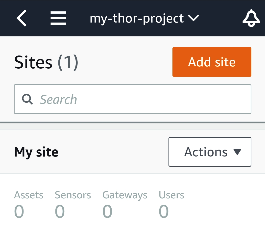 最初のステップは、アセット、センサー、ゲートウェイを記述するサイトを作成することです。それに「my-thor-project.」と名前を付けます。