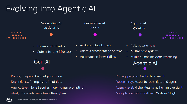 AWS Head of GTM, APJ-C, AI & Agents のMichael Armentano は、ハーバードビジネススクールの Karim Lakhani 教授の言葉「AI を活用する人間が、AI を活用しない人間を置き換える」を引用し、Amazon Quick が目指す世界観を示しました。生成 AI がチャットボットから単一エージェント、そして複数エージェンティックシステムへと進化してきた流れを解説し、Amazon Quick が提供する 4 つのチームメイト(インサイトアシスタント、データアナリスト、PhD リサーチャー、オートメーションエキスパート)を紹介しました。Amazon Quick は AWS コンソールだけでなく、Word、Outlook、Slack などのプラグインからもアクセス可能です。
