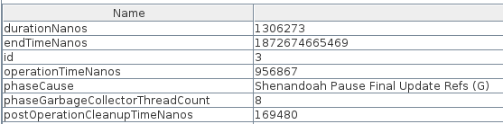 Shenandoah ジェネレーショナルモードには、ガベージコレクタの実行に関するインサイトを提供する、新しい詳細なメトリクスが追加されています。メトリクスは、コレクションを 1 つのイベントとして扱うのではなく、さまざまなコレクタのフェーズと、それらが同時に実行されるかどうかを公開します。追加情報には、アプリケーションのアロケーションや、コレクタが同時に実行される wall-clock time の、合計に対する割合が含まれます。(※訳者注: wall-clock time は開始から終了までにかかった実際の時間です。)