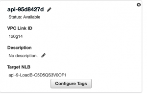 左側のメニューでリソース VPC リンクをクリックします。これは、Amazon API Gateway Ingress Controller によって作成されました。Amazon Virtual Private Cloud (VPC) 内の HTTP リソースへのアクセスを、パブリックインターネットに直接公開することなく提供します。