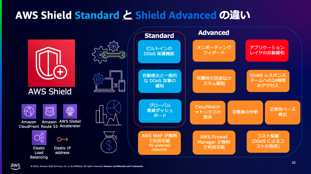 図4: AWS Shield Standard と Shield Advanced の違い