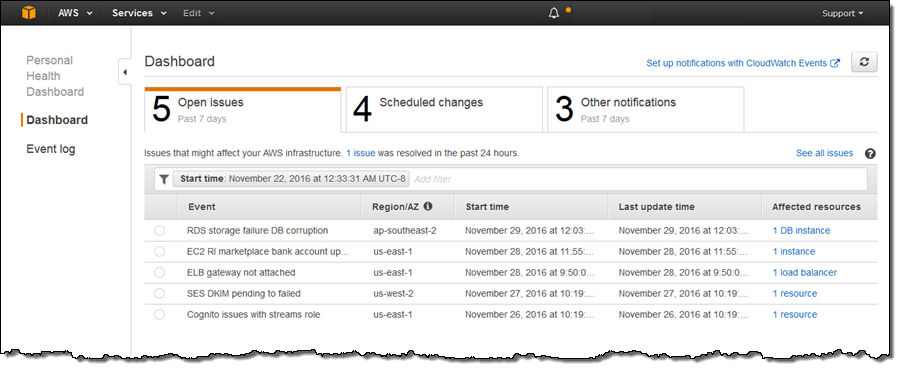 AWS Personal Health Dashboard – 関係するリソースの管理