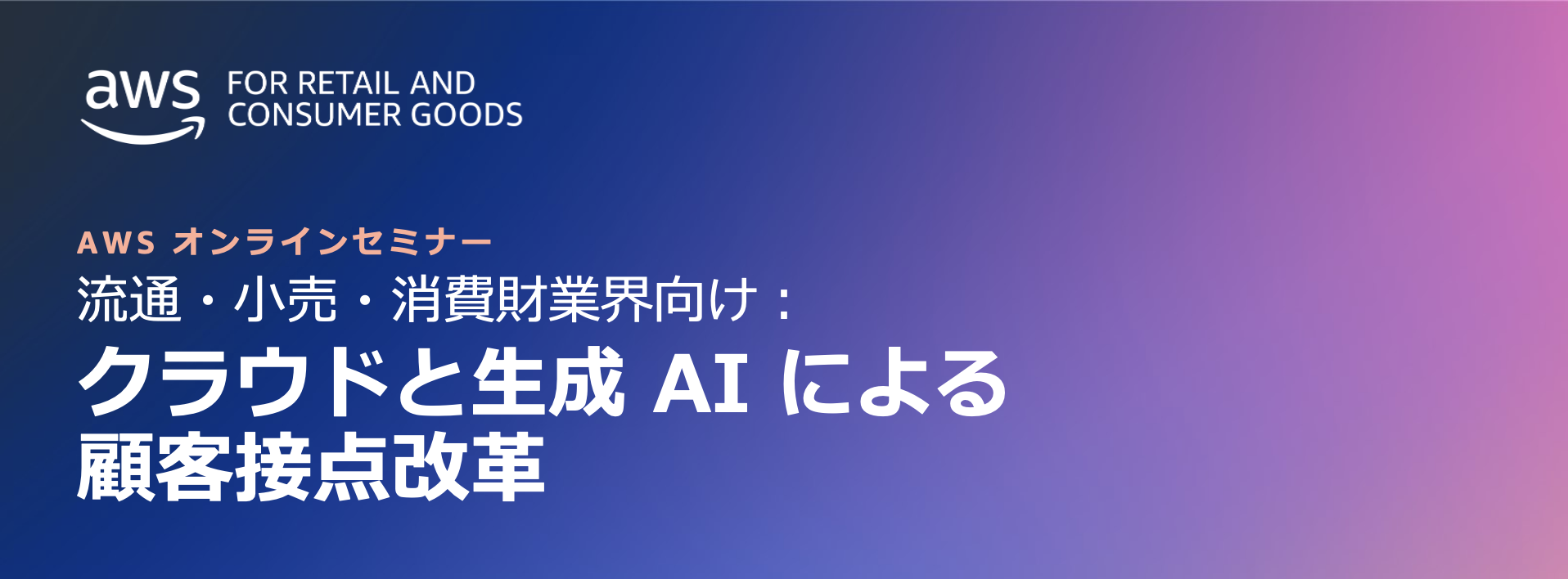 流通・小売・消費財業界に関わられている方々を主な対象として、2024 年 5 月 9 日に「流通・小売・消費財業界向け:クラウドと生成 AI による顧客接点改革」のオンラインセミナーを開催しました。ご参加いただきました皆さまには、この場を借りて御礼申し上げます。本ブログではセミナーの内容を簡単にご紹介します。