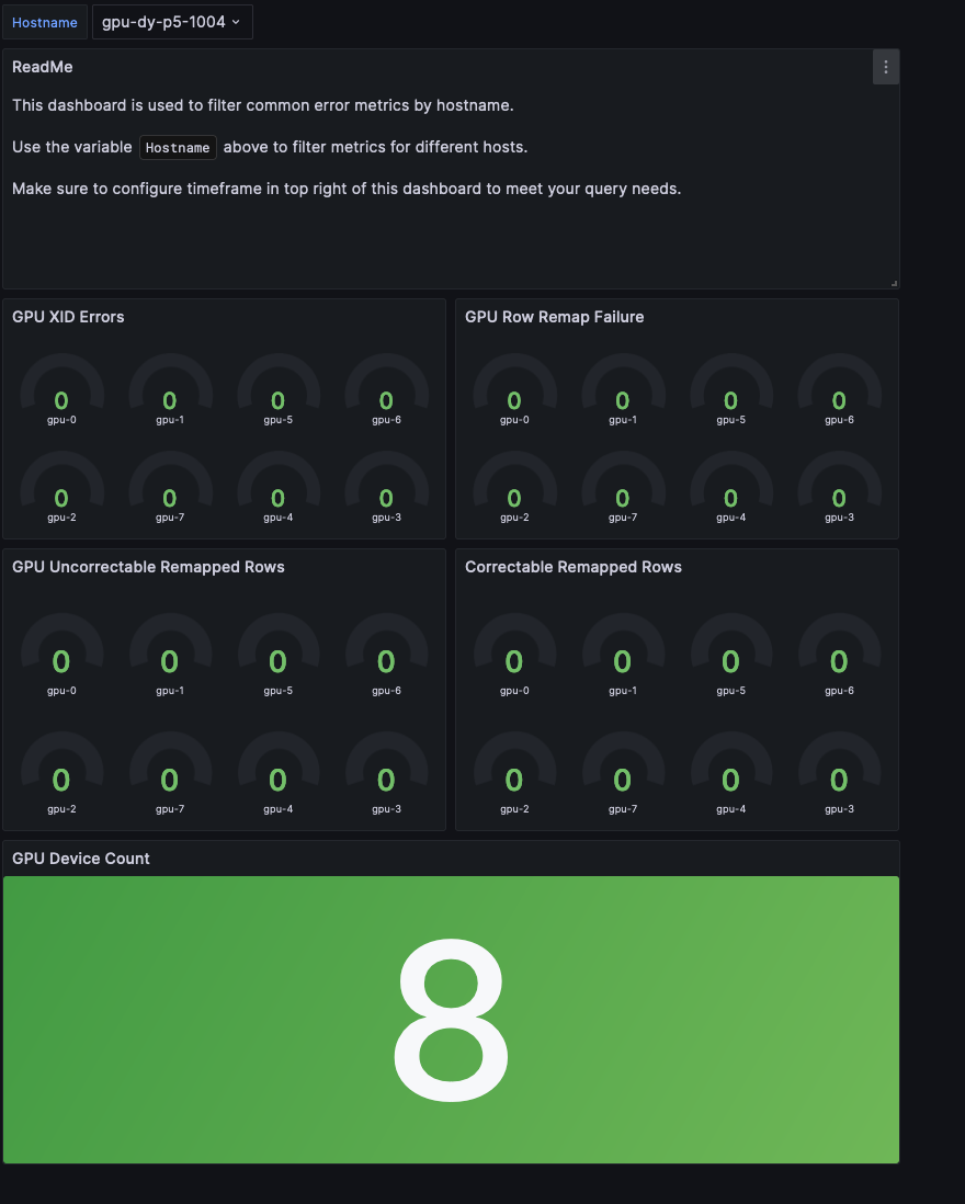 オプションのモニタリングインフラストラクチャは、 Amazon Managed Service for PrometheusとAmazon Managed Grafana(または EC2上で実行されるセルフマネージドGrafanaサービス)を組み合わせて、包括的な可観測性を提供します。GPUメトリクスのDCGM ExporterとネットワークメトリクスのEFA Exporterを統合し、システムの健全性とパフォーマンスのリアルタイムモニタリングを可能にしました。このセットアップにより、GPUの健全性、ネットワークパフォーマンス、トレーニングの進捗を継続的に追跡し、Grafanaダッシュボードを通じて異常の自動アラートを実現します。例えば、 GPU Health Dashboardは、Uncorrectable Remapped Rows、Correctable Remapped Rows、XID Error Codes、Row Remap Failure、Thermal violations、Missing GPUs(Nvidia-SMIから)などの一般的なGPUエラーのメトリクスを提供し、ユーザーがハードウェア障害を可能な限り迅速に特定できるようにします。