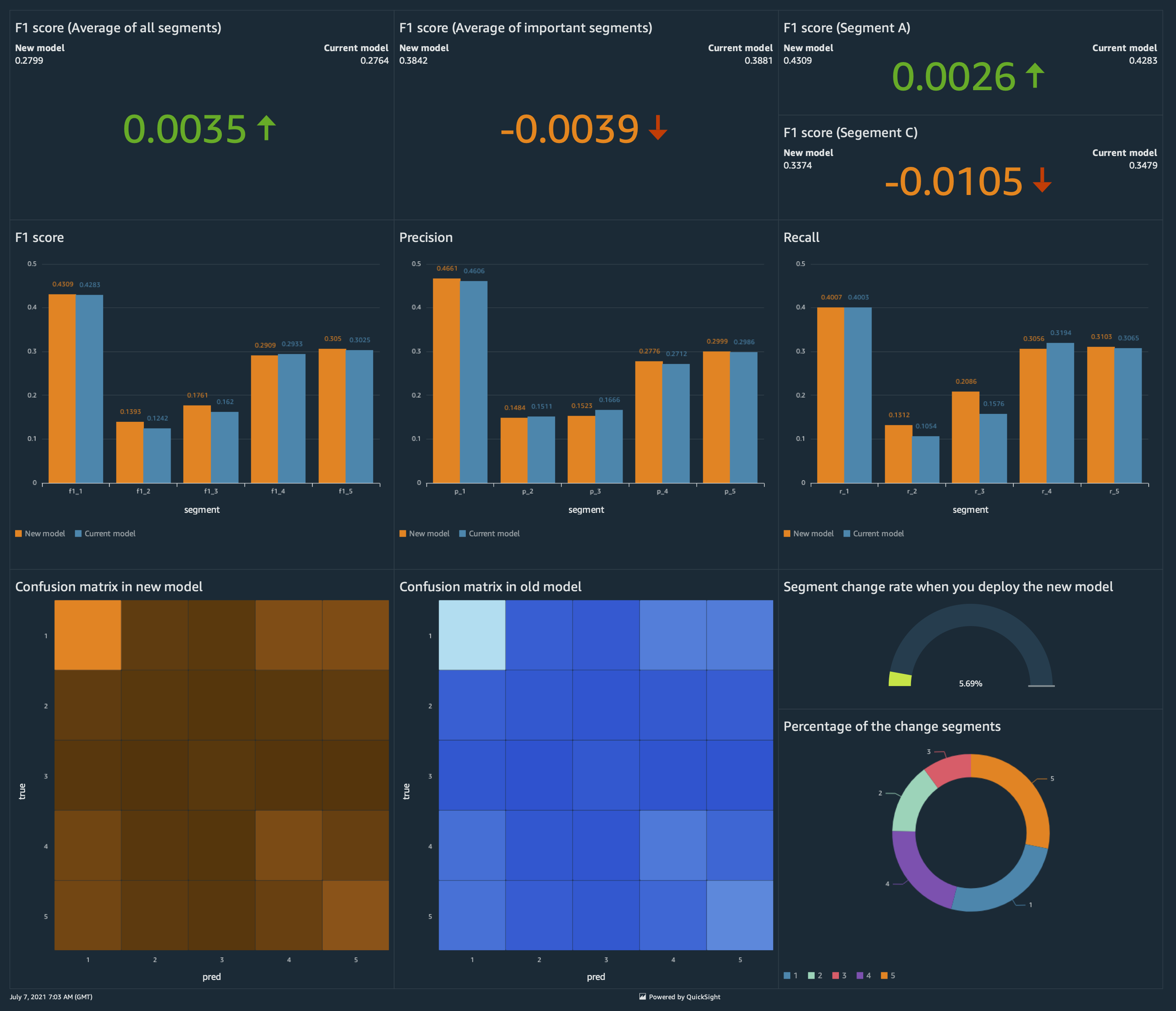 本プロジェクトでは、このレビュー用URLを新しいモデルに対する評価値を可視化したQuickSightのDashboardに設定しました。これによって運用者は、新しいデータでモデルが新規構築された際に整備されたDashboard上でその精度や傾向を簡単に把握することが可能になります。