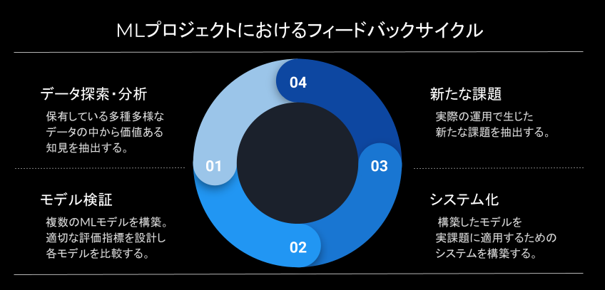 MLプロジェクトにおいて、初期のPoCフェーズで得られたモデルを更新せずに使い続けられることは滅多にありません。データの変化に追従し、実際の運用で得た知見を反映するため、MLを用いたシステムには高いアジリティが求められます。このようなMLの開発プロセスを実現するためには、データサイエンスに対する高いリテラシーと、それを速やかにシステムに落とし込むエンジニアリングが必要になります。