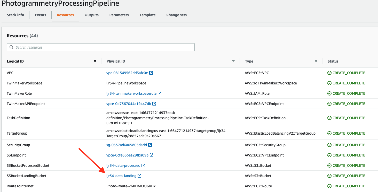 - 完了したら、新しい S3 ランディングバケットに移動します。図 6 に示すように、「リソース」タブにリンクがあります。