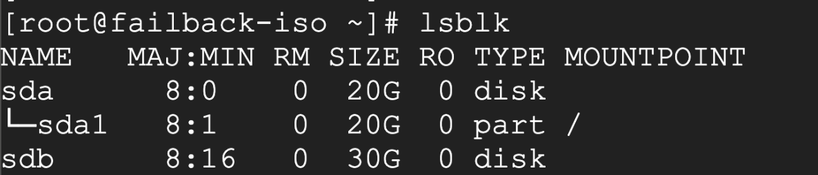 追加ボリュームをアタッチした Failback Client VM のファイルシステムは次のようになります: