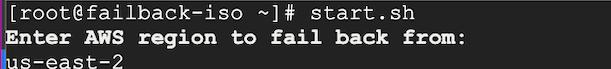 Failback Client をstart.sh コマンドを実行し起動します。 その際に、 AWS Region 名の入力を求められます。この記事の構成の場合、 us-east-2 と入力します。