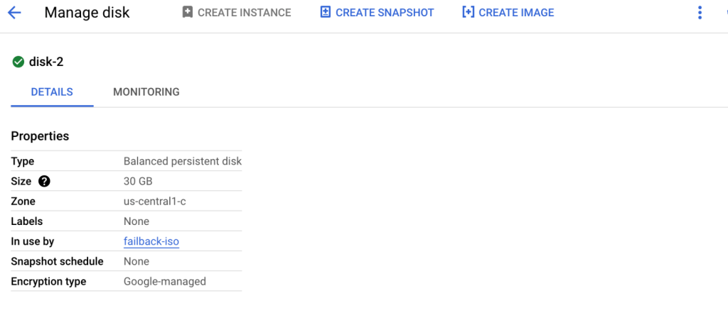 AWS 上のリカバリインスタンスの全データを GCP に作成した Failback Client VM の新しいボリューム(sdb)にレプリケーションしています。フェイルバックプロセスを完了させるための最終ステップは、このボリュームを使用して新しいイメージを作成し、作成したイメージを用いて GCP に新たな Compute Engine のスピンアップ(訳注: 起動過程の一連の流れを指します)することです。この新しい VM には、オリジナルデータ(つまり災害前のデータ)と DR のテスト中に AWS に書き込まれたデータが保存されており、この VM を用いて通常の運用へ復帰させます。これは、 GCP から AWS へのレプリケーションを開始し、障害発生時や DR 訓練を実施したい時に、演習を再実行することを意味します。