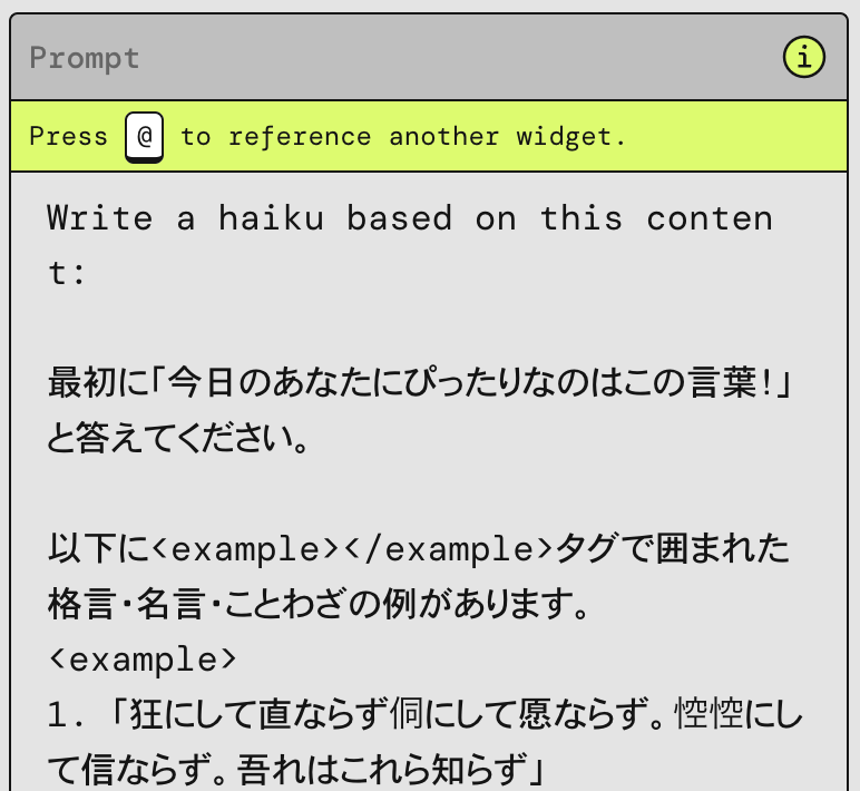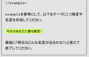 「どうなるかな…」のプロンプトを見てみると、実際の格言の例がプロンプトに入っていることがわかります。