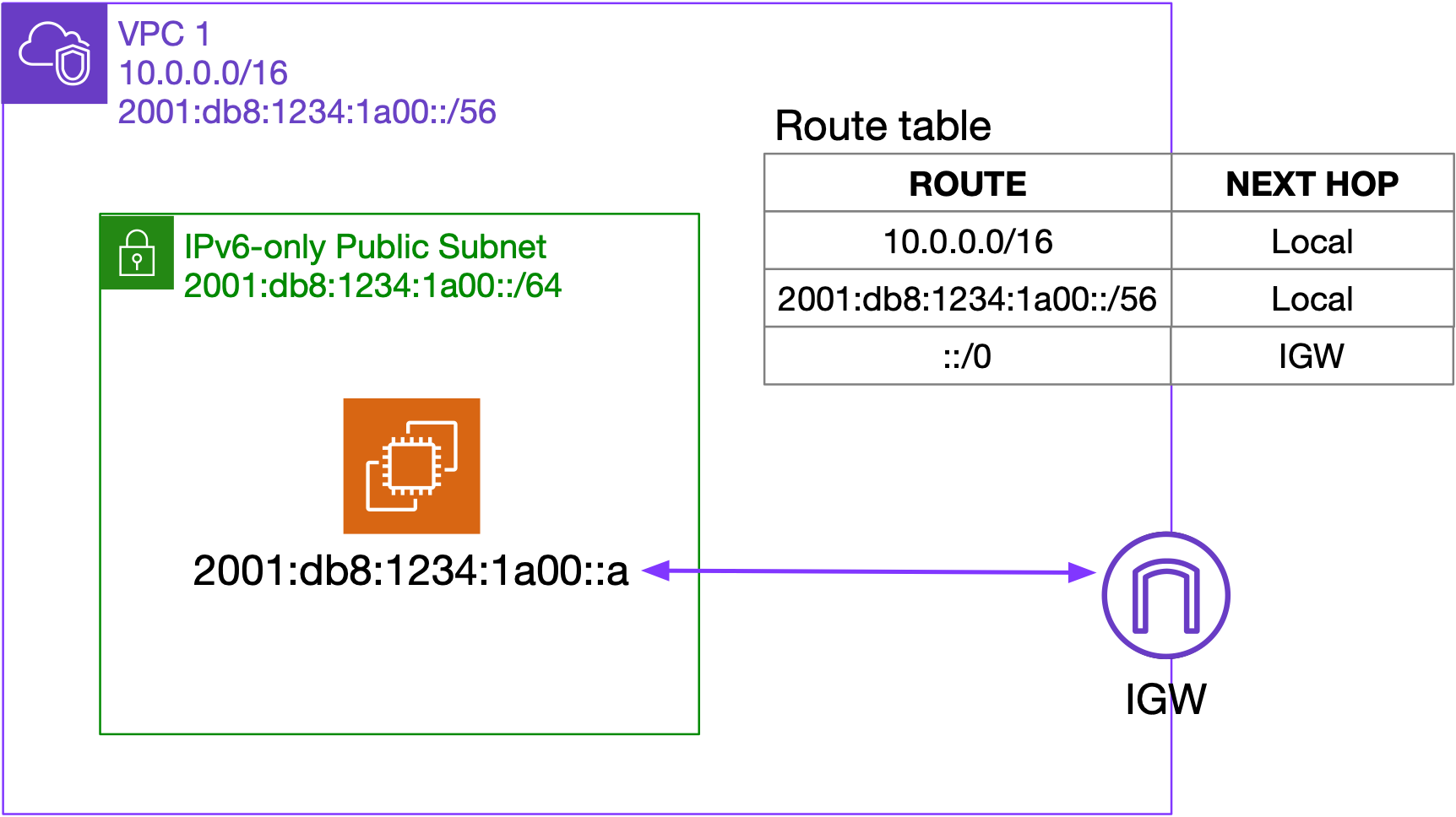 Figure 2: Public IPv6-only subnets Internet connectivity
