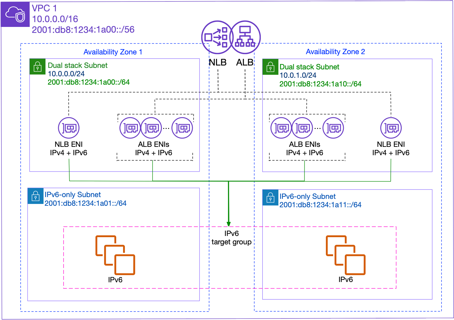 Figure 7: Application and Network Load Balancer with IPv6 targets