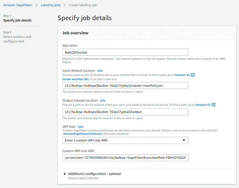 - 入力データセットは s3://<BULKQA-BUCKET>/manifest.json にあります。