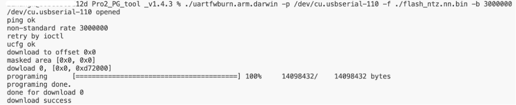./uartfwburn.arm.darwin -p /dev/cu.usbserial-110 -f ./flash_ntz.nn.bin -b 3000000
