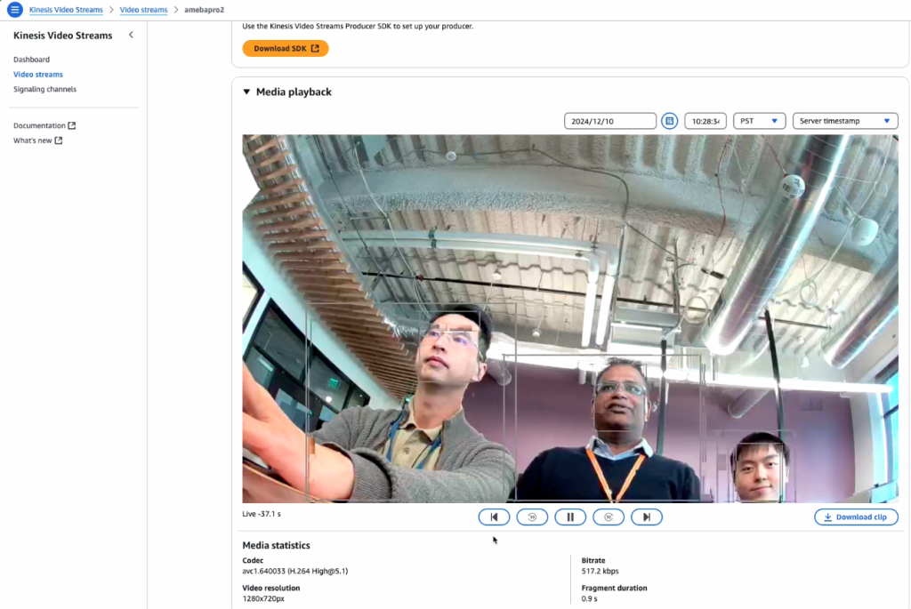 Amazon Kinesis Video Streams、Realtek、Plumerai の連携により、エッジビジョンAI と高度なビデオストリーミング機能を活用した最先端のホームセキュリティソリューションが実現しました。この統合システムは、スマートホームと企業向け監視市場の双方で高まりつつある AI/ML ビデオソリューションへの需要に応えるものです。また、このソリューションは、監視機能の向上、効率的な処理、シームレスなクラウド統合を提供することで、家庭やビジネスにおける AI を活用したセキュリティ強化の可能性を示しています。