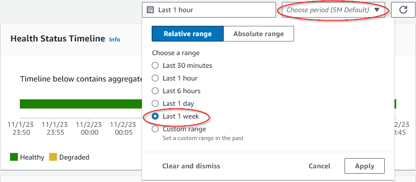 次に、適切な期間 (この例では 1 週間) と監視間隔 (5 分) を選択します。 :