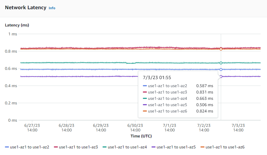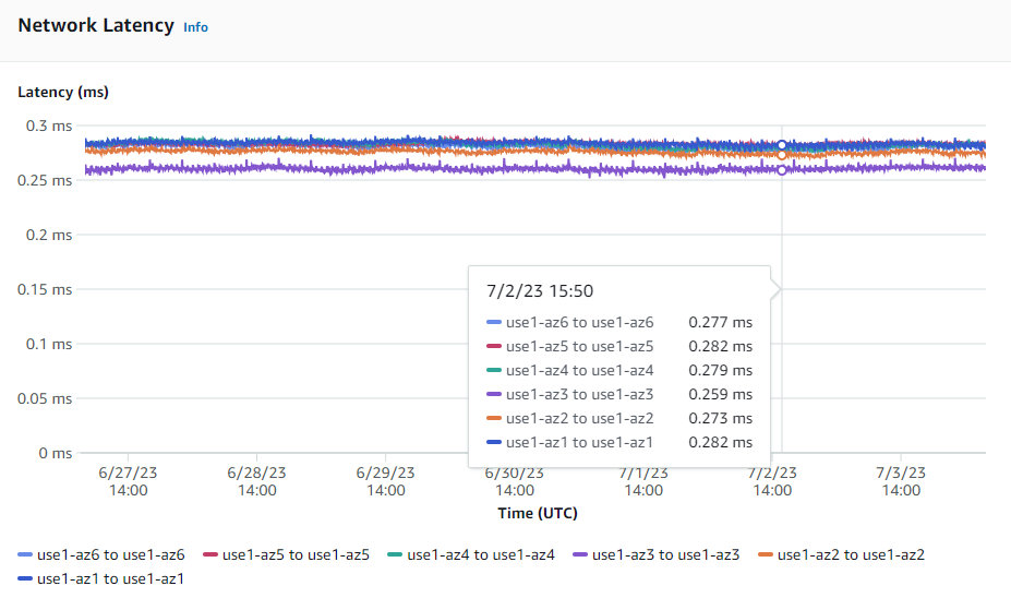 AZ1 内の AZ 内ネットワーク遅延も 0.7ms の閾値を下回っています。