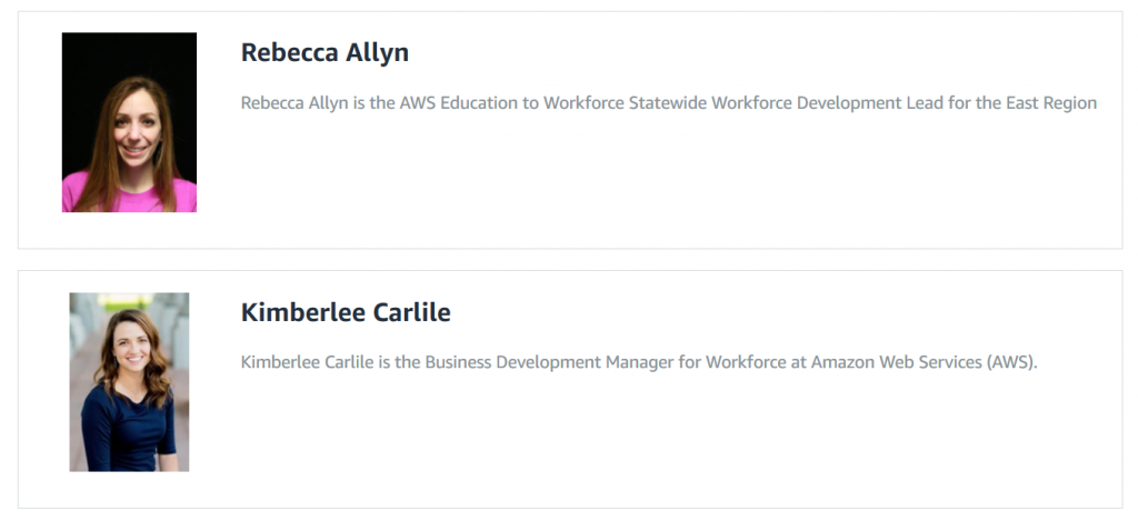 この取り組みを通じて、ジョージア工科システム大学 (Technical College System of Georgia)とジョージア州教育省は AWS Academy と協力して、同州の教育機関がクラウド・コンピューティングのカリキュラムを確立し、需要が高いクラウド関係の多くの仕事に必要な、業界でも認められた AWS 認定を学生たちが取得できるように支援します。 初等教育機関(K12 機関)にとって、このコラボレーションは、学生がグローバル経済で成功するための準備をし、多くの学生たちにデュアル・エンロールメントのための新規の機会を提供し、高校卒業に先立って市場でトップレベルの就職スキルを体得してもらう──というジョージア州教育省のミッションを支援するものです。ジョージア州立学校の監督者である Richard Woods 氏は、「私たちは、すべての生徒のチャンスを拡大し、来たるべき彼・彼女らの人生とやりがいのあるキャリアに向けての準備を行うことに、コミットしています」と、述べました。「私たちは、クラウド・コンピューティングの分野で州全体で 1,200 人の学生に認定資格を取得させ、繁栄するこのテック業界でのキャリアへの道を拓くことを目標としています。」