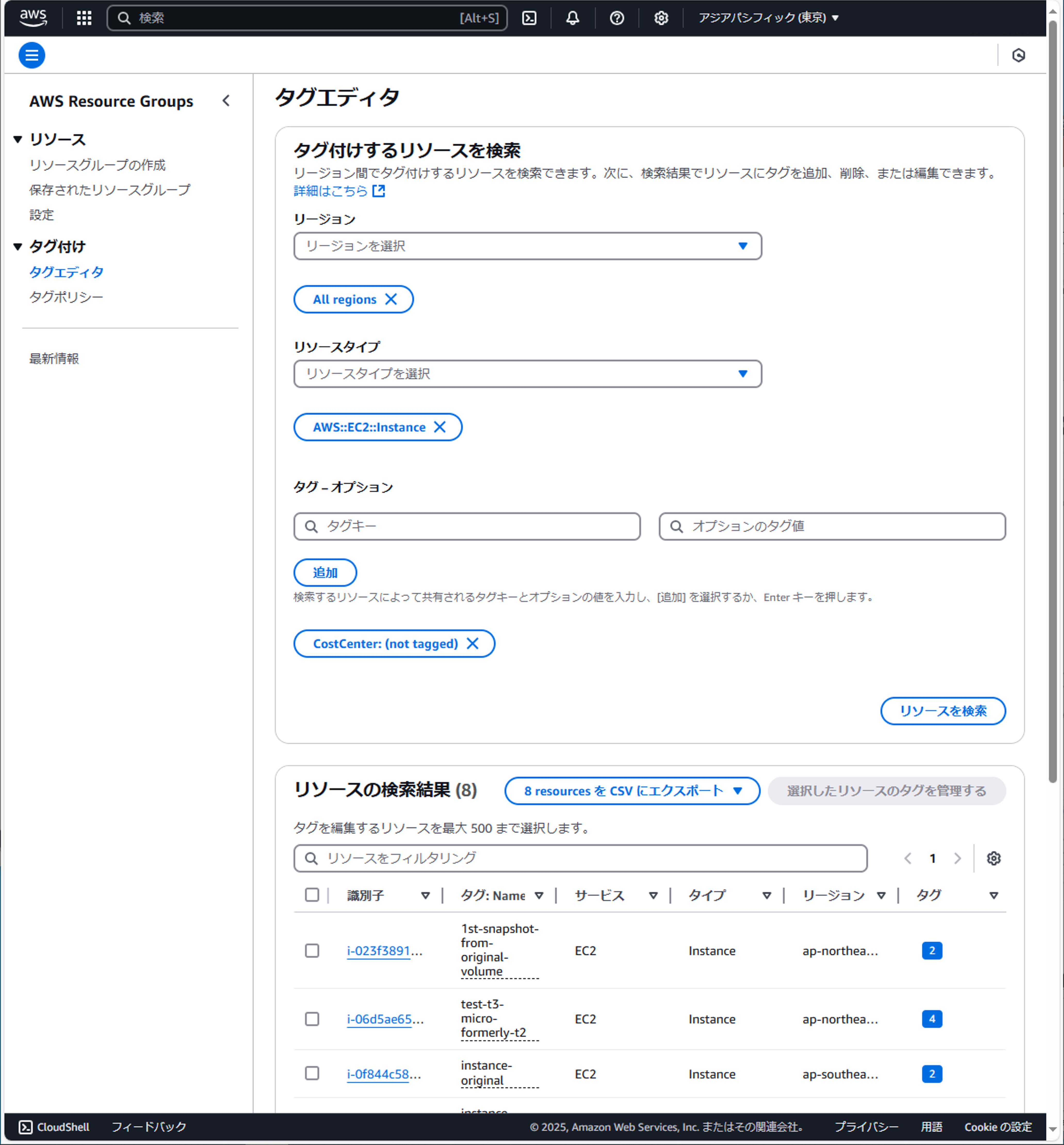 タグ付けポリシー実装の最後のステップは、過去にタグなしでプロビジョニングされたリソースに対処することです。これはタグエディタを使うことで実行できます。