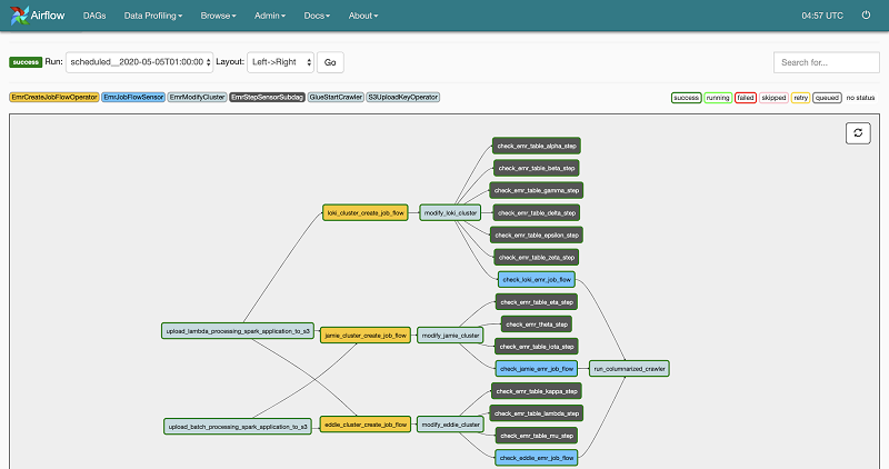 パイプラインアーキテクチャの初期のイテレーションには、データセットごとの新しいバッチ ETL パイプラインの作成と、そのデータセット専用の EMR クラスターの作成が含まれていました。インフラストラクチャはコードとして記述されており、操作とリソースは自己完結型であるため、新しいパイプラインのクローンを作成することで、処理能力を迅速かつ簡単に拡張できました。これにより、最も重要なデータセットのパイプラインを迅速に生成できるようになりましたが、運用の改善のための機会が豊富にありました。