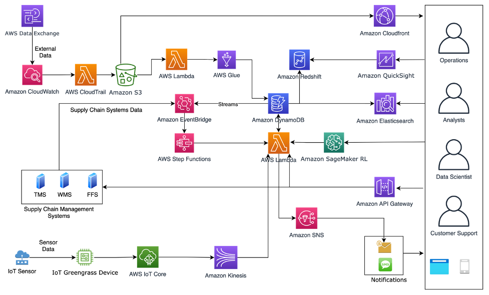 サプライチェーンにおける意思決定は複雑な活動です。これには、代替港や代替輸送メカニズム、輸送の可能性、所要時間、所要コストなどに関する情報と分析が要求されます。強化学習(RL)と呼ばれる ML の一種では、ML と制御理論を組み合わせることで意思決定のための処方的分析を提供します。輸送経路計画などの意思決定を最適化するために Amazon SageMaker上に構築されたサービスである Amazon SageMaker 強化学習を利用することで、意思決定にかかる時間を大幅に短縮することができます。