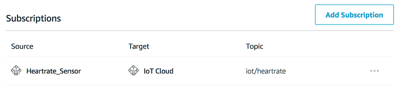 セットアップ完了後、心拍数データは、デバイスから AWS Greengrass を使用する AWS IoT Core サービスにルーティングされます。したがって、このメッセージルートを円滑にするために、Greengrass グループに単一のサブスクリプションを追加する必要があります。