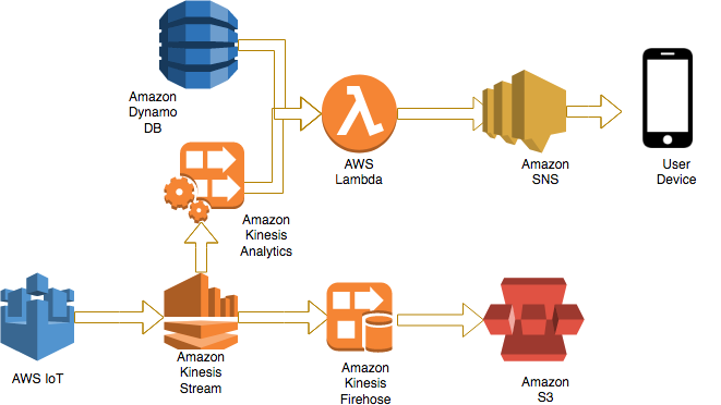 Kinesis を使用したデータの取り込みと、Lambda、DynamoDB、および Amazon SNS を使ったアラートの管理