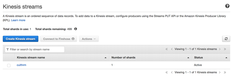 Kinesis 内のストリーミングデータは、Kinesis Client を使ってリアルタイムで処理および分析できます。Kinesis データストリームの作成方法について学ぶには、Kinesis Data Streams 開発者ガイドを参照してください。