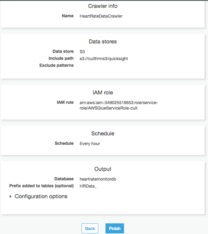 以下の図は、AWS Glue のクローラ設定の概要画面です。