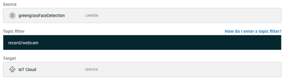 Amazon DynamoDBへの保存やAmazon EMRでの結果分析の処理のためにローカルでの分析結果をAWS IoT Cloudに送信できるようにサブスクリプションを作成します。 Raspberry Piに別のローカルデバイスが接続されている場合は、分析結果に基づいてAWS IoT Greengrassコアを使用してAWS Lambdaを通じてそれを制御できます。 この例では、結果はMQTTメッセージを介してAWS IoTクラウドに送信されます。