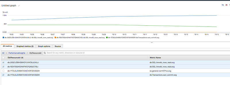 以上で修正は終わりです。 CloudWatch に戻ると、次のスクリーンショットどおりに PerformanceInsights というカスタム名前空間が追加したメトリクスと並び新しく表示されているはずです。