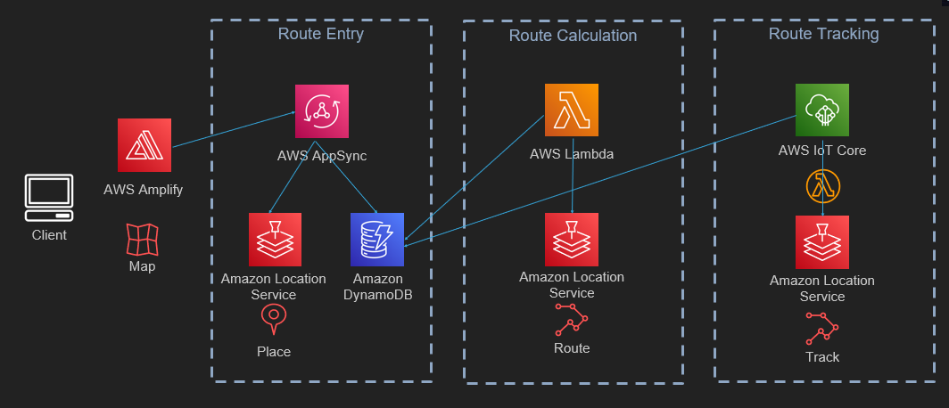 AWS のネイティブサービスを利用し、ルート入力・計算・トラッキングを簡素化