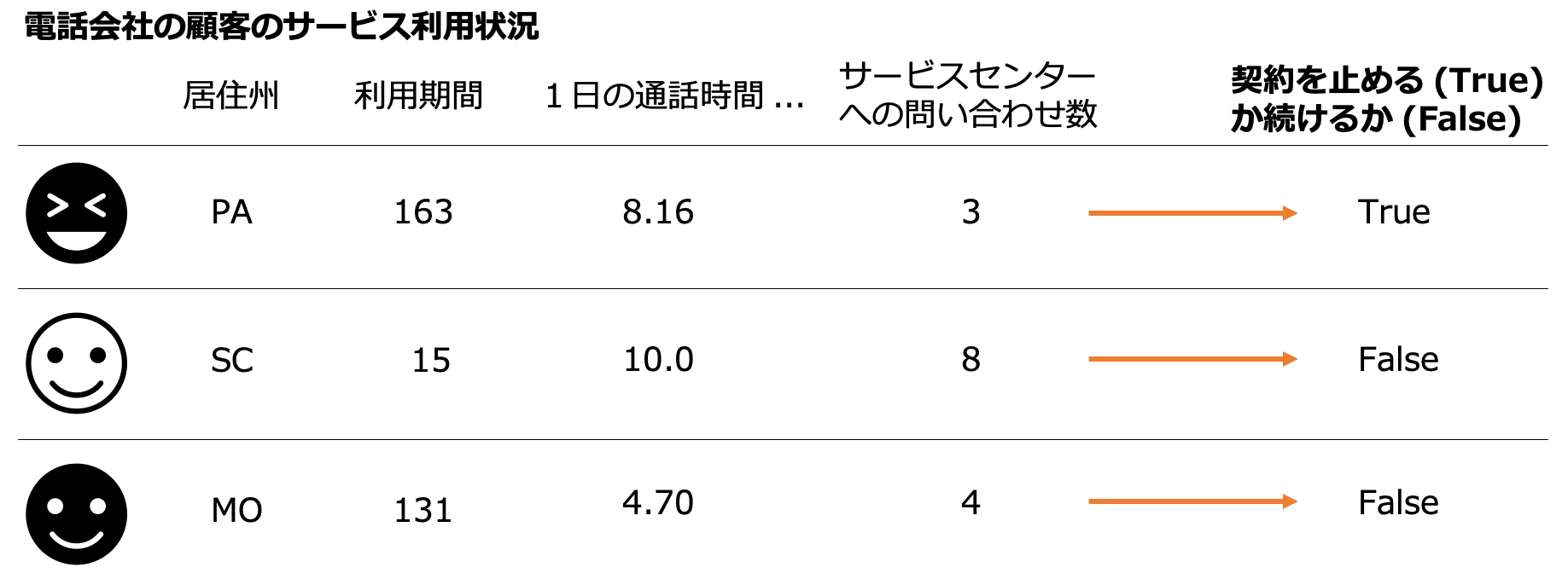 電話会社における顧客のサービス利用状況と、その顧客が離反するかどうかを表すサンプルデータに対して、データの分析や前処理を行い、その顧客が契約を止めるか、続けるかを予測する問題に挑戦しました。