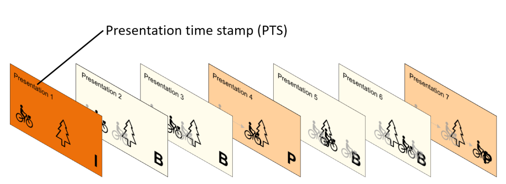 次に、フレームが撮影された順番で、フレームを視聴者に対して表示される必要があります。この順序付けを確実にするために、各フレームにプレゼンテーションタイムスタンプが割り当てられます。