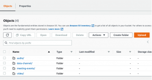 - バケットポリシーが正しく設定されていれば、キャプチャしたすべての会議を同じS3バケットの下に格納するか、または各会議を異なるバケットに格納するかは、デベロッパーに選択していただけます。また、MEETING-IDをプレフィックスとして使用することをお勧めします。これにより、異なるプレフィックスのもとで、別の会議を構成することができます。