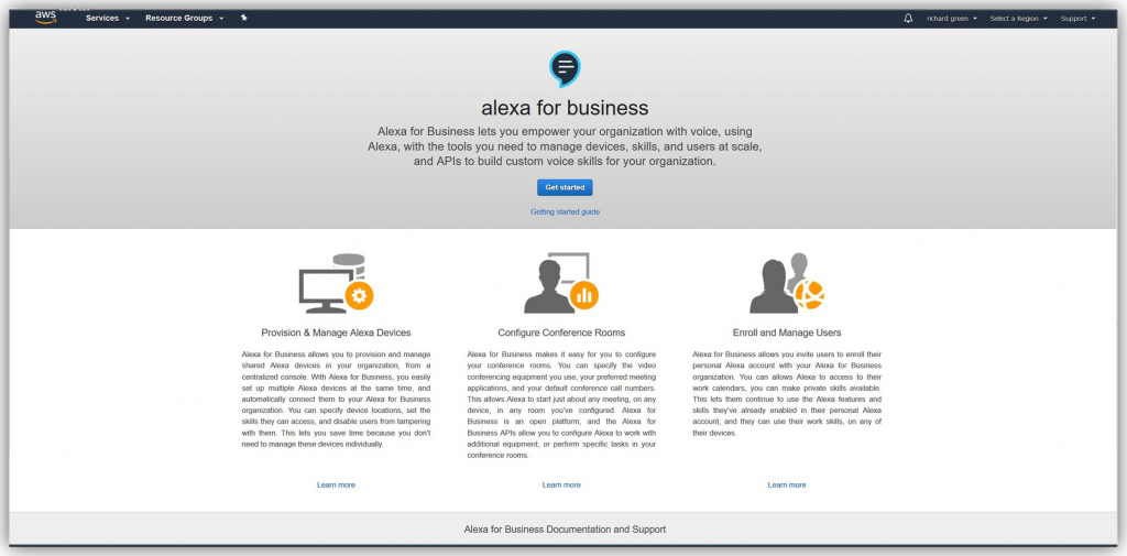 Alexa for Businessのコンソールとサービスの機能について簡単に解説しました。 Alexa for BusinessのWebサイトを表示したり、AWSドキュメントの管理者ガイドとAPIガイドを読んだり、Alexa for BusinessコンソールのGetting Startedビデオを見たりすることで、Alexa for Businessの詳細を知ることができます。