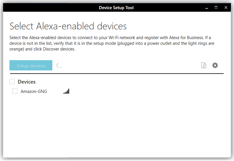 まず、私はAlexaデバイスをセットアップすることから始めます。 Alexa for Businessは、複数のデバイスを設定し、それらをWi-Fiネットワークに接続し、Alexa for Businessアカウントに登録するデバイス設定ツールを提供します。これは、個人的なAlexaデバイスの設定プロセスとはまったく異なります。 Alexa for Businessでは、一度に25台のデバイスをプロビジョニングできます。