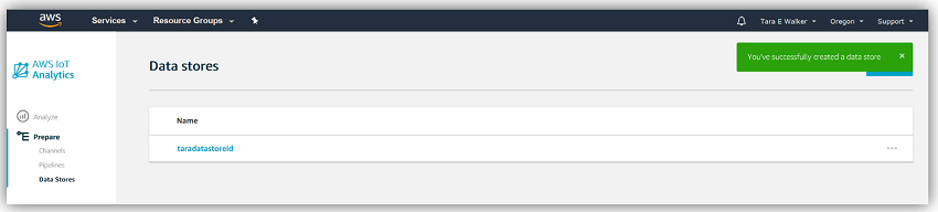 Data Storeに名前をつけます、ここでは、TaraDataStoreIDとして、Create the data storeボタンをクリックし、Data Storeのセットアップ完了メッセージが表示されます